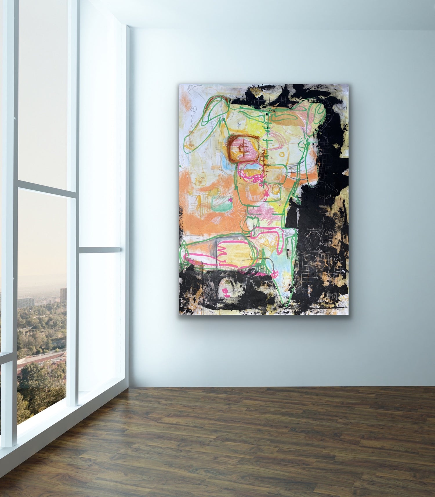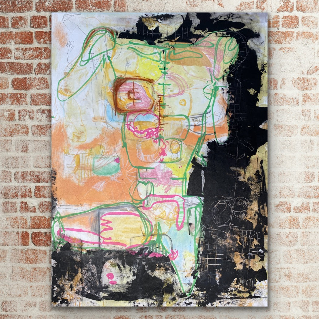 Acrylic, mixed media on canvas.