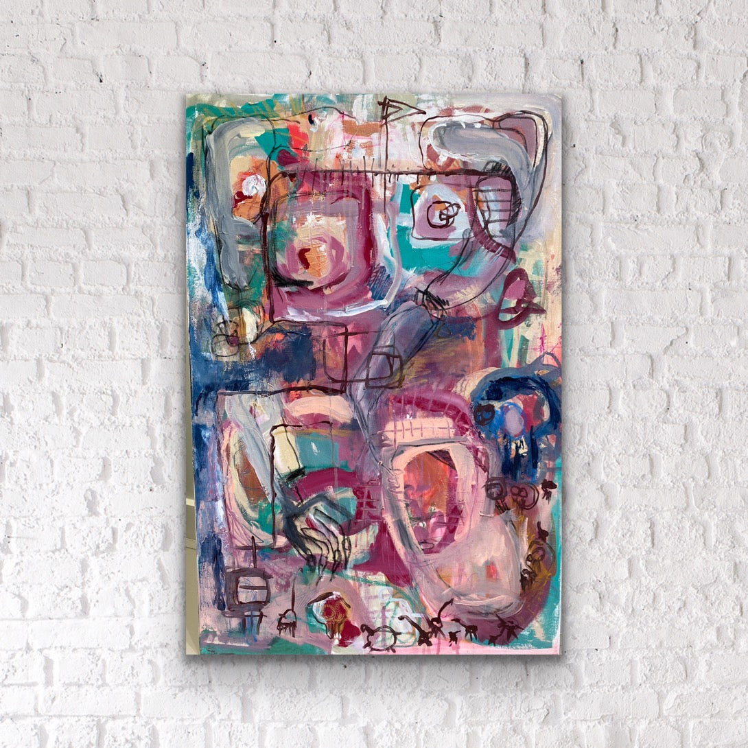 Acrylic, mixed media on canvas.